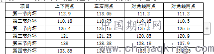 第一節內環與第二節外環連接、第二節內環與第三節外環連接、第三節內環與第四節外環連接。內環與外環連接連接共有三處尺寸見表(2),表內尺寸均是測量卡環四個均分點,單位為mm。