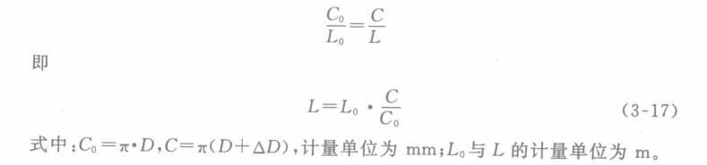 設牽引輪的標稱周長為Co,實際周長為C,米數表對應于標稱周長所測得的長度為L。,對應于實際周長所測得的長度為L,則: