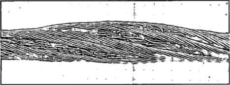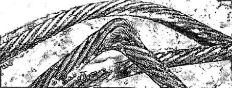 分析:這種變形出現在具有鋼芯的鋼絲繩上。當外層繩股發生脫節或變得比內部繩股長的時候就會發生這種變形。具體分析請見:鋼絲繩散股和“鳥籠”的形成及預防措施