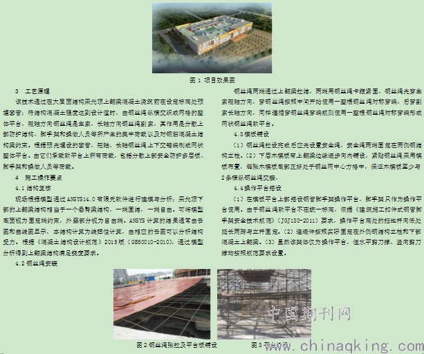 1 緒論 利用主體結構混凝土強度,通過鋼絲繩主索加副索分散上部防護結構和操作腳手架等產生的荷載。通過懸空搭設鋼絲繩加多層板和木方的軟平臺既可以滿足上部采光頂操作平臺搭